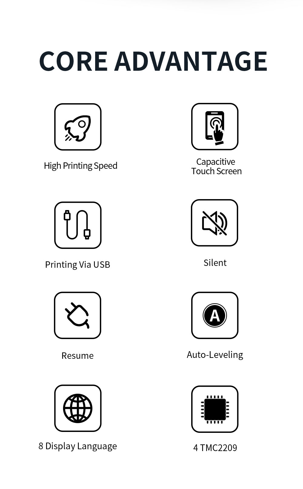 The SR uses a 32-bit motherboard with TMC2209 stepper motor drivers allowing for high-speed, quiet and more stable print