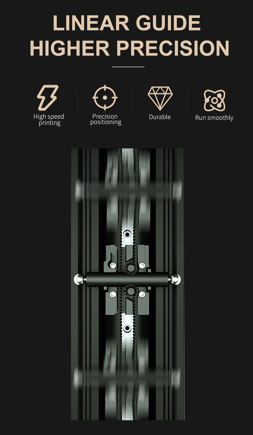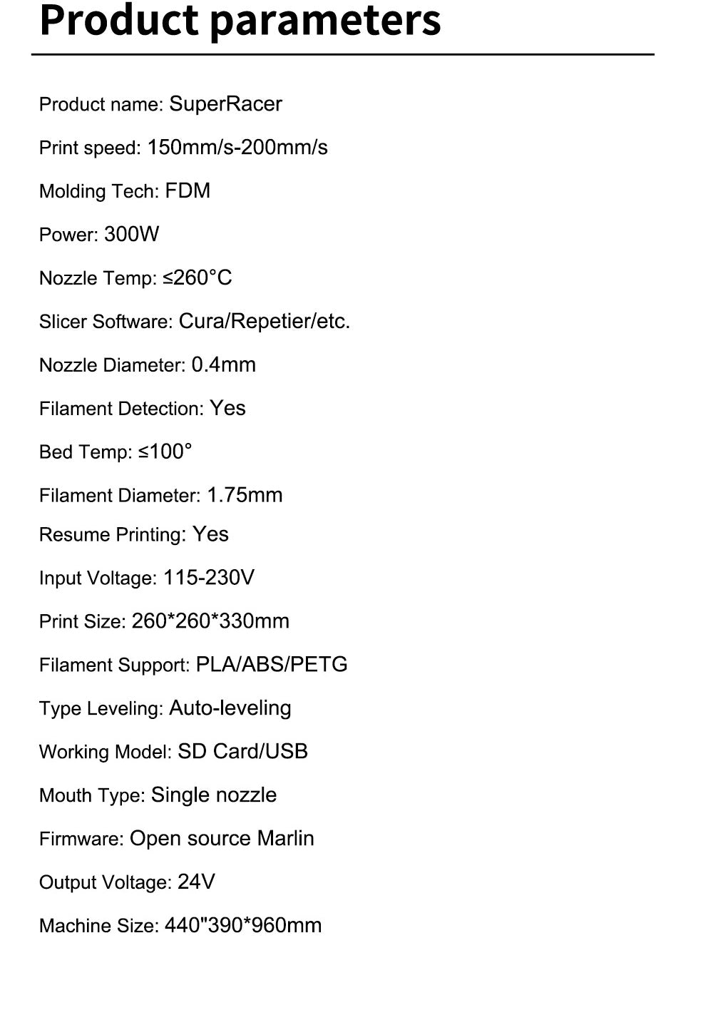The default printing speed of the SR is 150mm/s (which is about 3-4 times faster than an i3-style printer), The SR can also print at 200mm/s while retaining good print quality. Compared to the average 3D printer, the same 3D model can be printed in half the time on the SR.